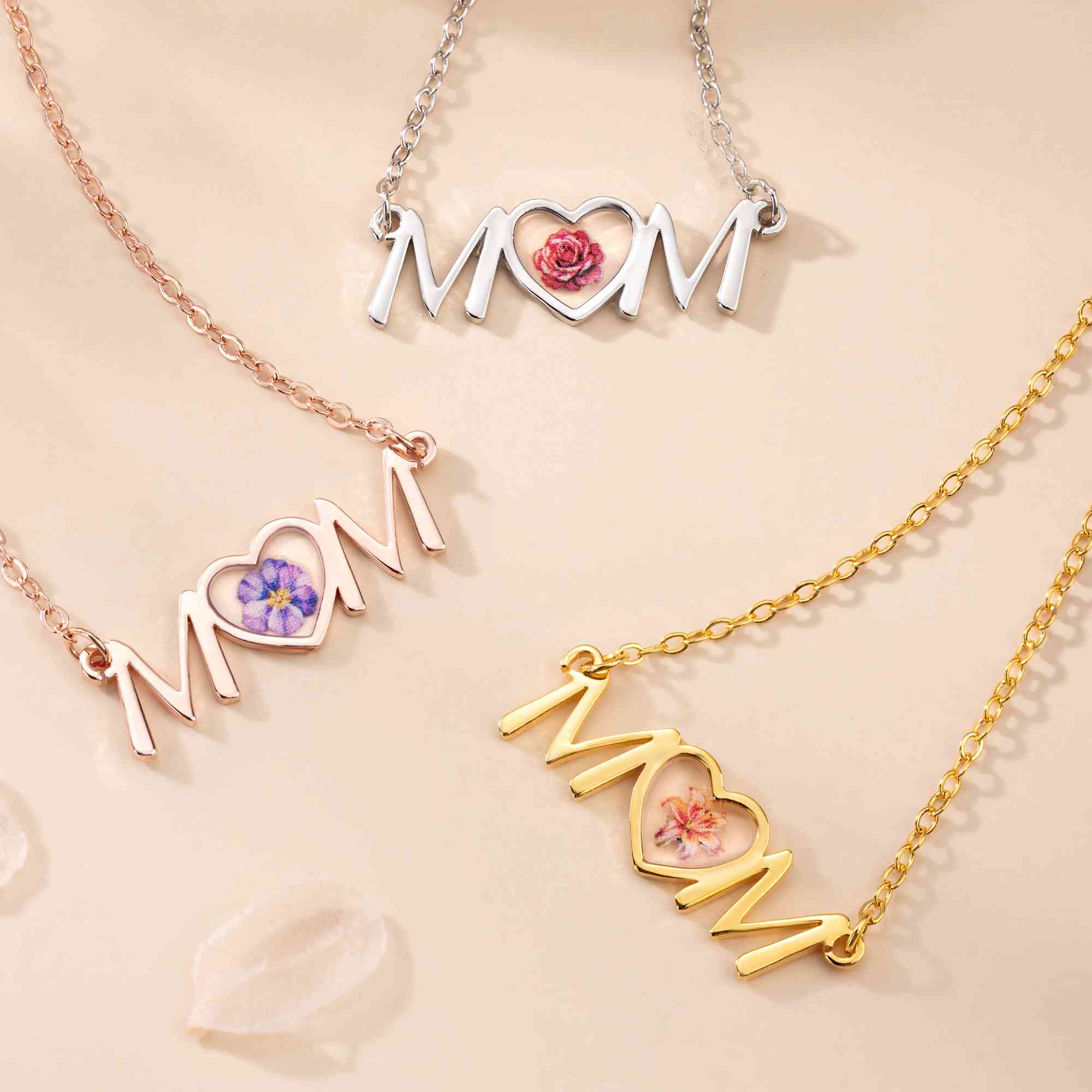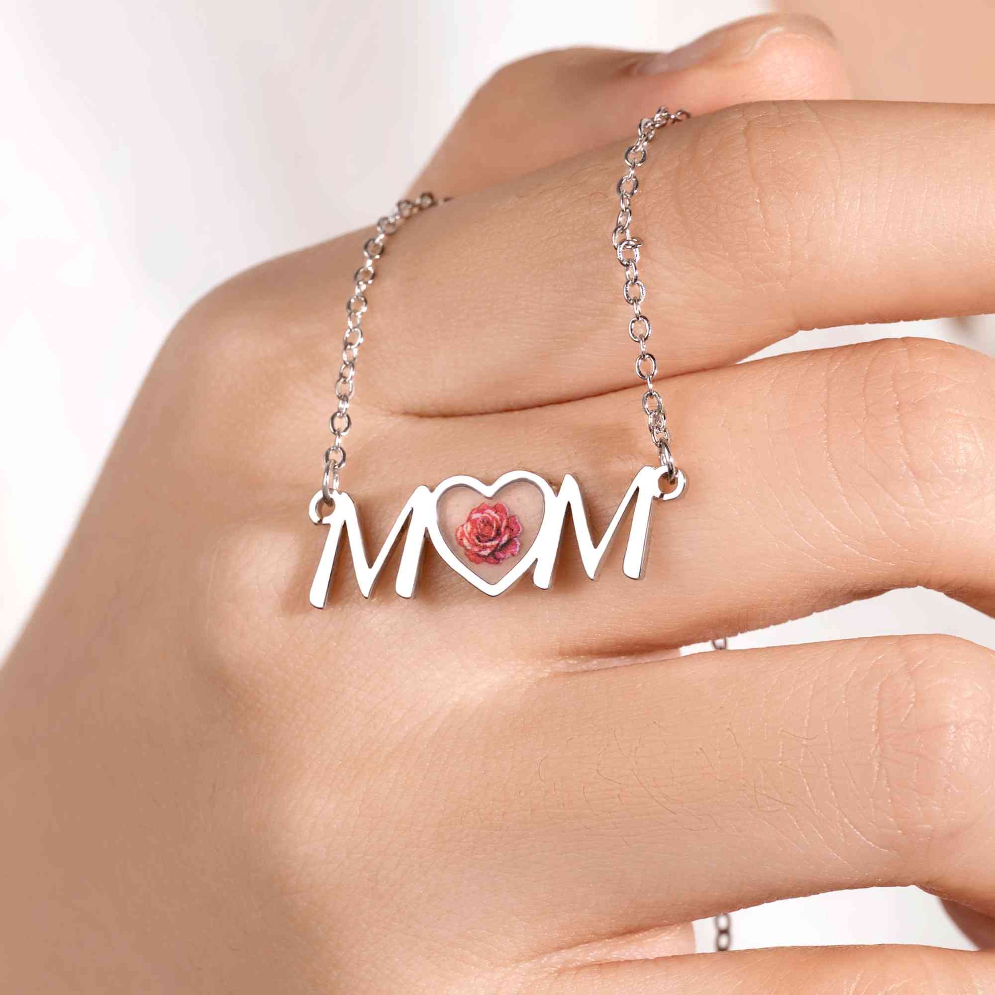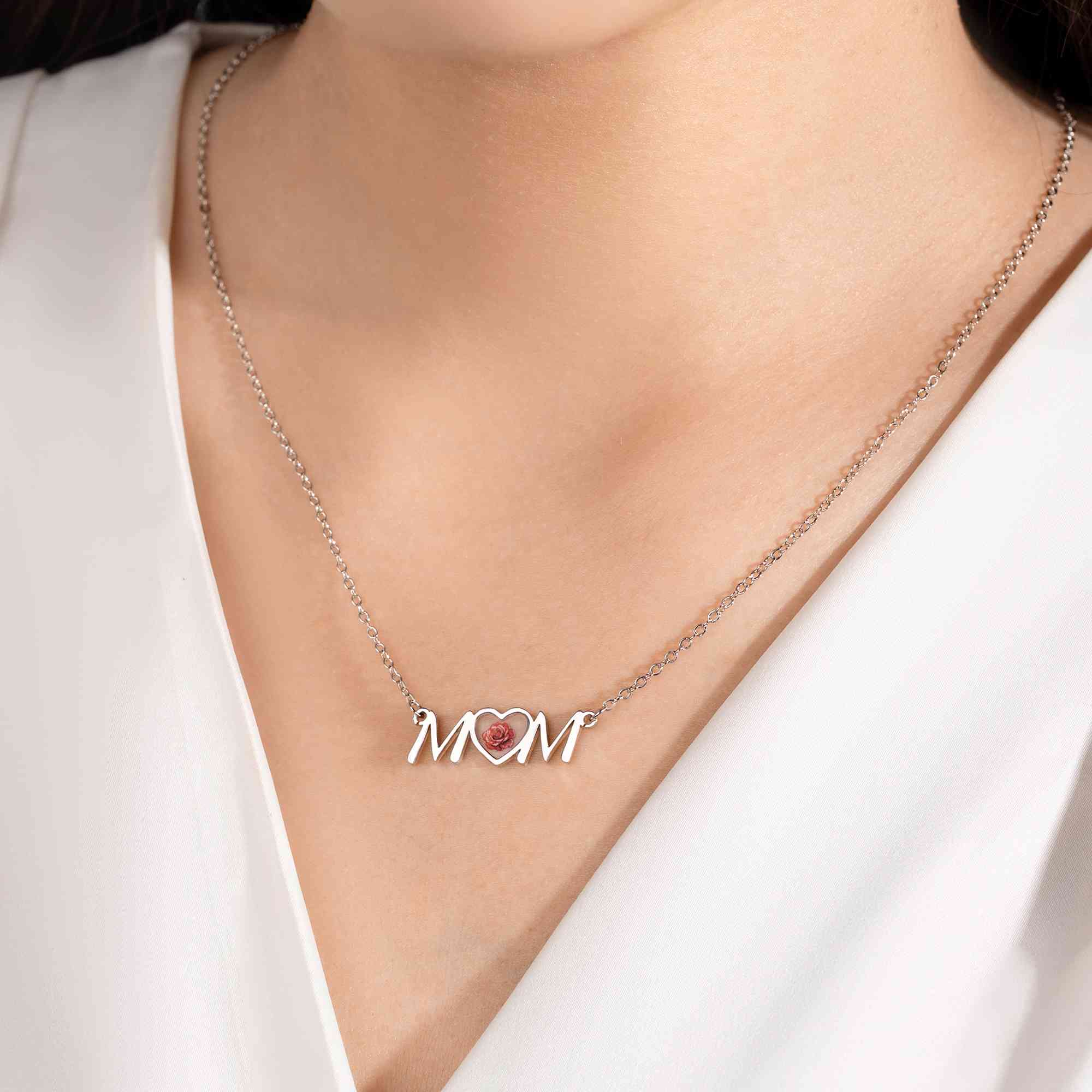 Heartfelt "MOM" Design - This mom heart necklace features a soft, flowing heart outline centered with a delicate birth flower forming the word "MOM", creating a warm tribute to the love shared between a mother and her family. Its dainty style adds a gentle, feminine touch that suits everyday wear.