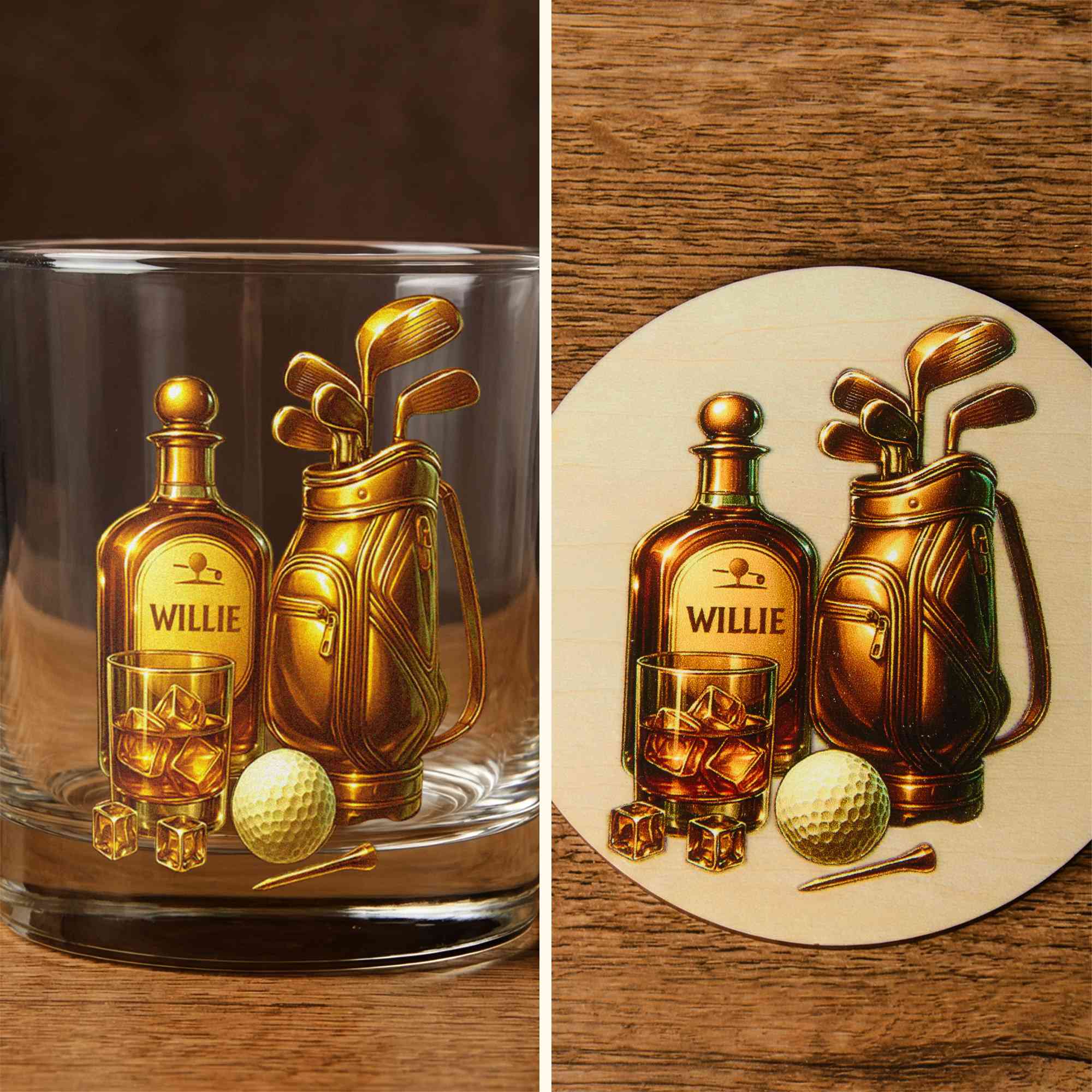 Versatile Uses - This personalized golf whiskey decanter set features a sleek glass decanter, matching glasses, and coasters. Use it as party favors for a golf tournament, a retirement celebration, or simply as a daily treat at home.